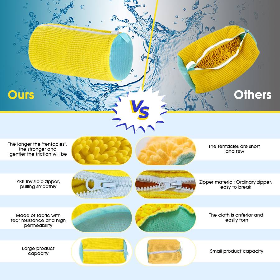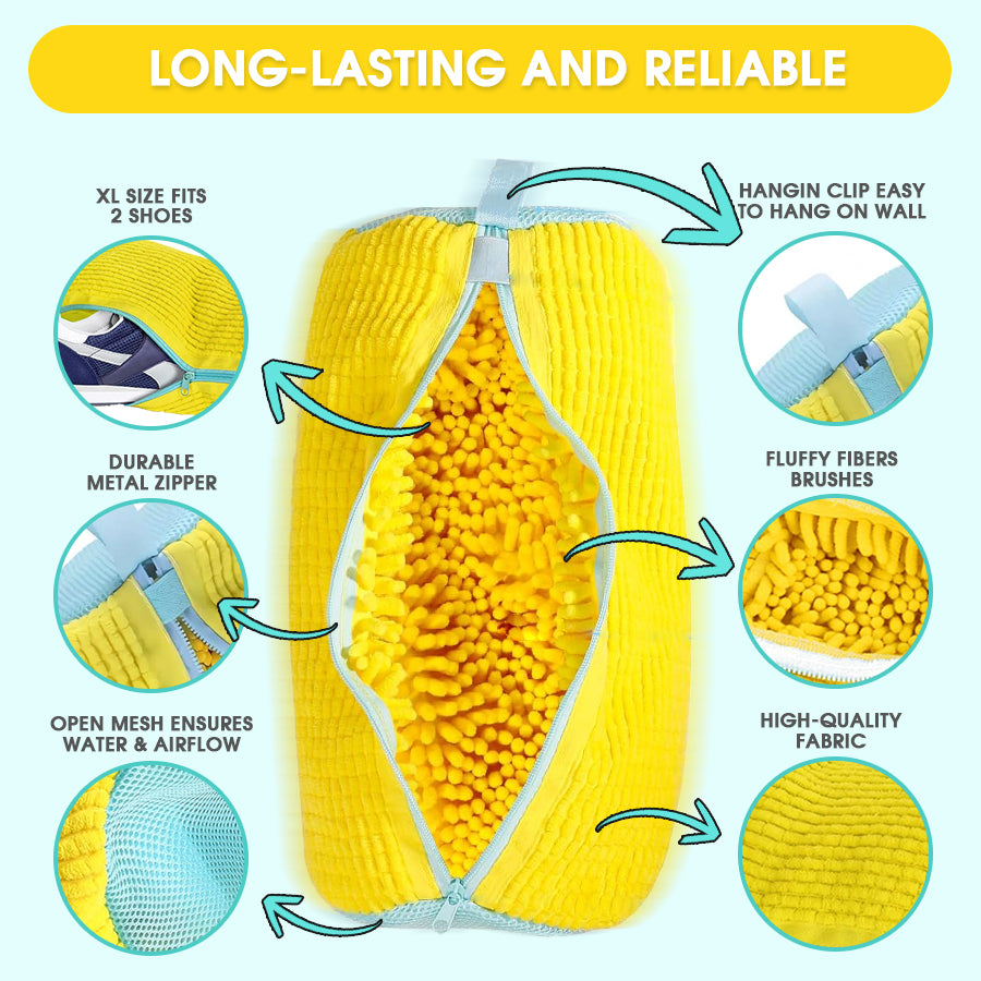 Our stain-free shoe laundry bag is the world's first multi-layer laundry shoe bag equipped with over 1500 soft bristles that can agitate and clean 99%, of dirt on your shoes in just minutes without worrying about damaging your shoes or washing machine.