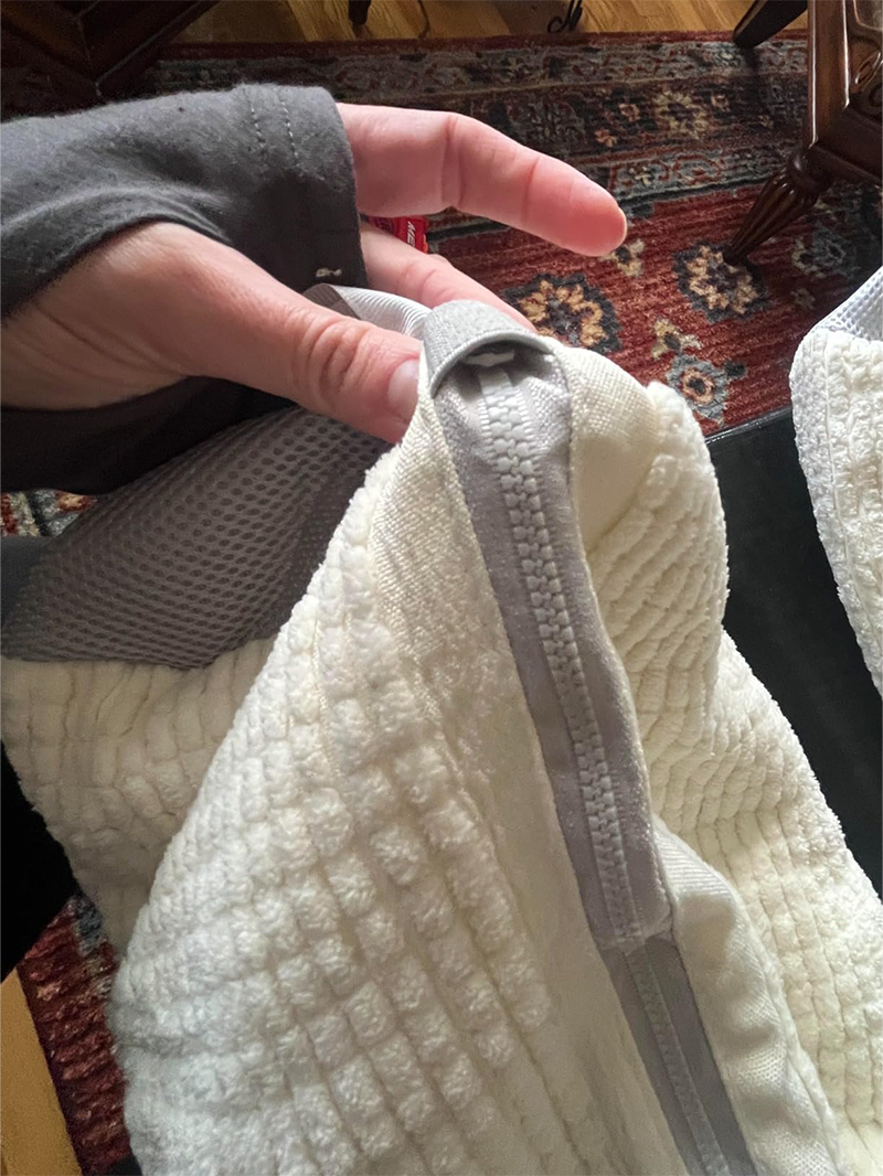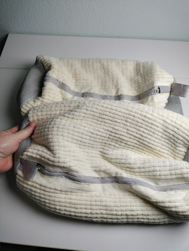 Simply place your shoes inside the laundry bag, zip it up, and let the washing machine do the work in minutes. Add laundry detergent (liquid or pod) and select "low heat' or 'delicate' setting for the wash cycle. And ta'da - enjoy squeaky clean shoes!