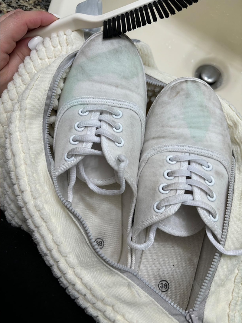 Stop going through the trouble of hand washing your favorite shoes using harsh materials like Baking soda, charcoal or chemical products that may work on some stains, but they are harsh on your shoes and often damage the delicate materials as well as alter the shape of the shoes.